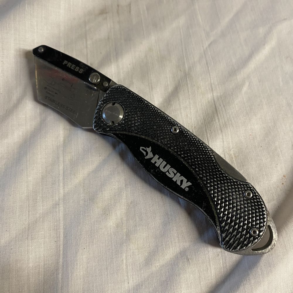 Previous Product Next Product Husky Utility Knife 2 $5.00 Good Usable Shape, But needs blade. Husky Utility Knife 2 quantity Add to cart Categories: All Products, Tools and Hardware Related products Quick View Quick View 4x coleman camp store lot. parts or repair $30.00 Add to cart Quick View Quick View Pick axe head, $10 each $10.00 Add to cart Quick View Quick View kids water toy boxing ring, only 2 gloves $8.00 Add to cart Quick View Quick View Kitchen Utensil Holder $4.00 Add to cart